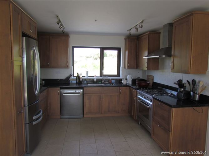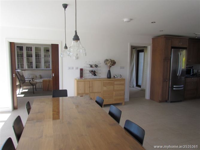 There is a smaller living room with soild fuel stiove and comf couches which leads on to the expansive kitchen / dingin room. The dining table has seating for 8 / 10 people and the kitchen is very well equpped with a an american fridge freezer. There is a utility room with all facilities.